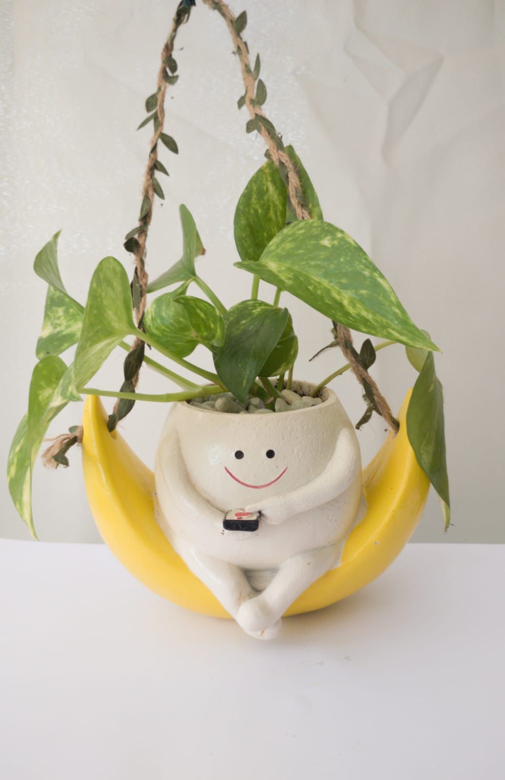Arreglo decorativo potus en maceta colgante