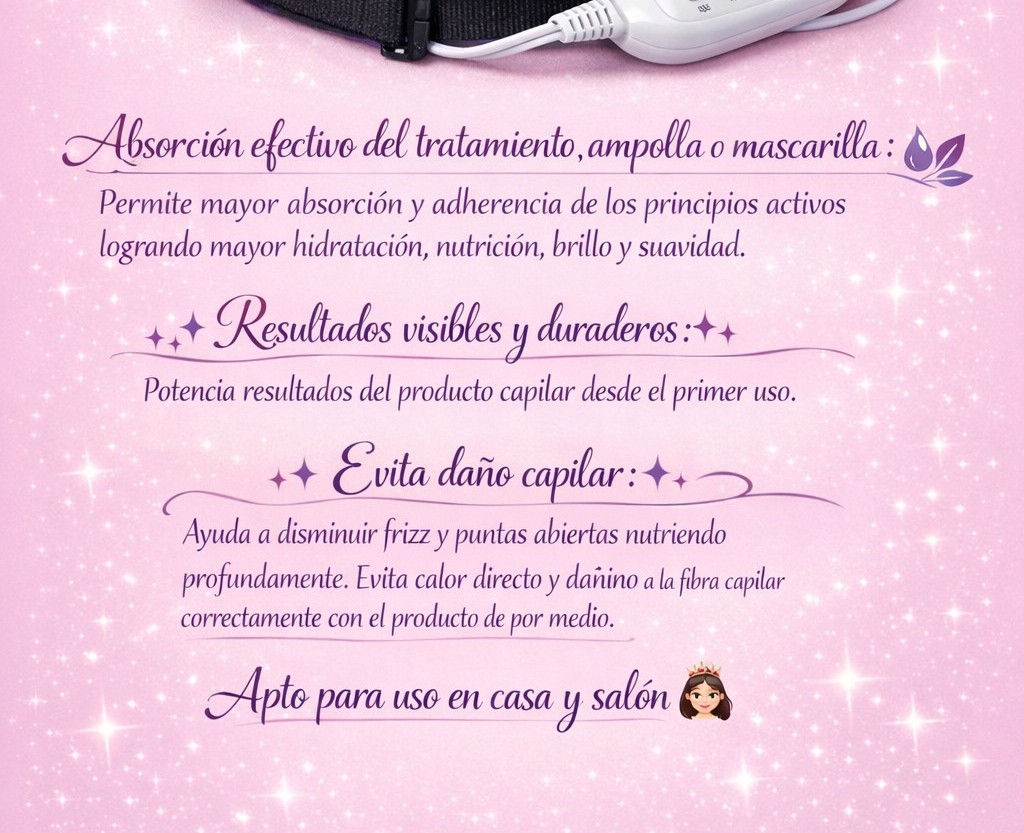 El gorro termico ideal para uso con tratamientos capilares ,alisados ,ampollas y mascarillas.