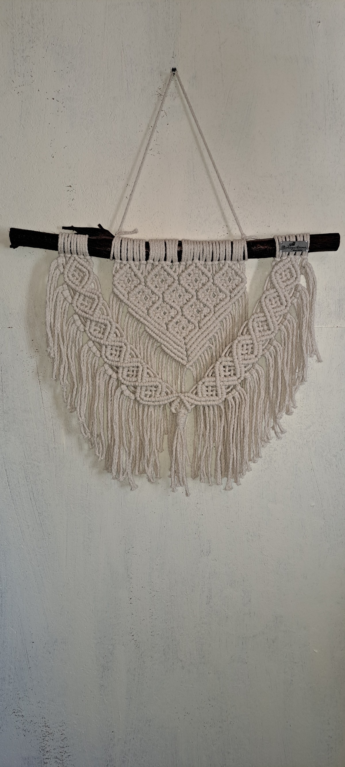 Mural de nudo feston y forma de diamante en cuerda de algodón trenzado de 4mm el color crudo tamaño 45x45 cm