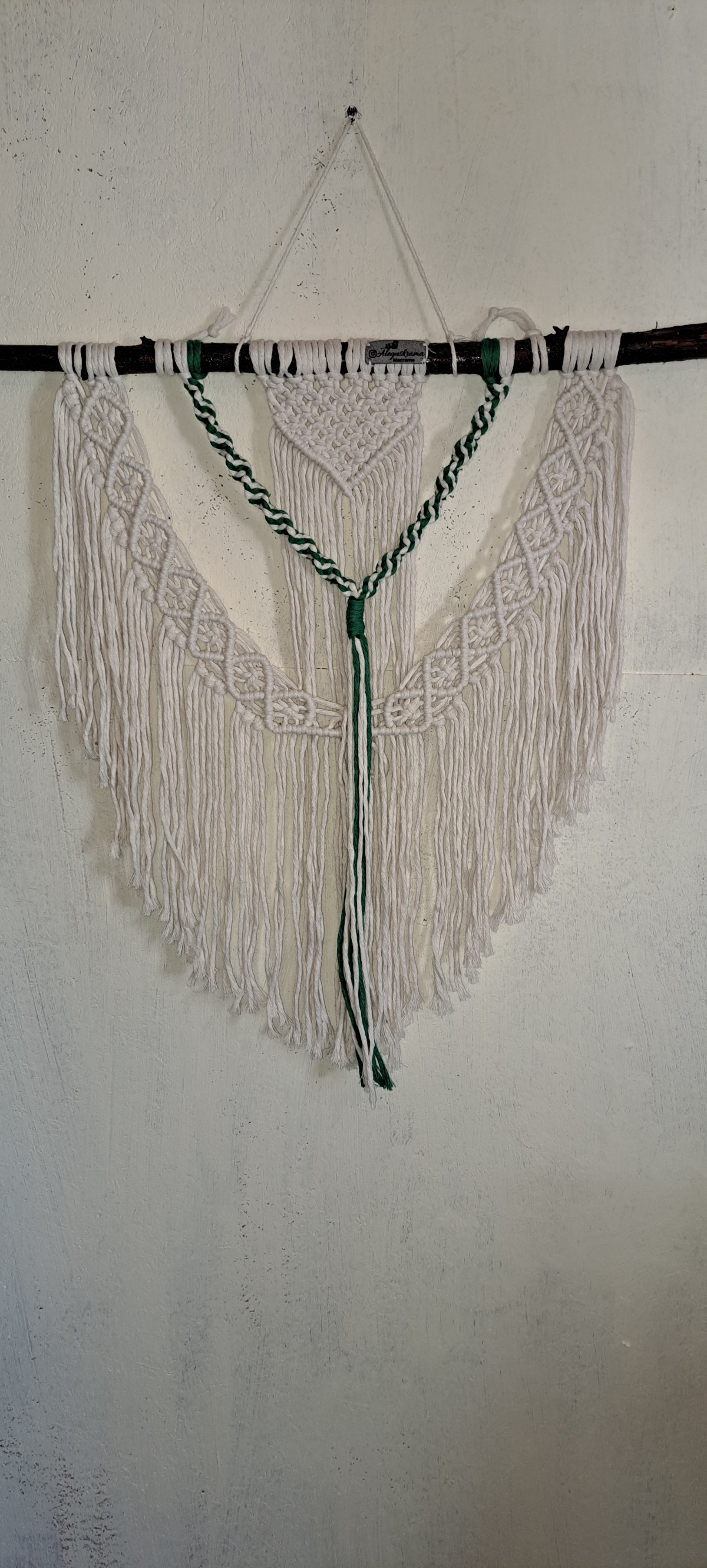 Mural tejido en nudos cuadrados y feston con detalle de nudo espiral