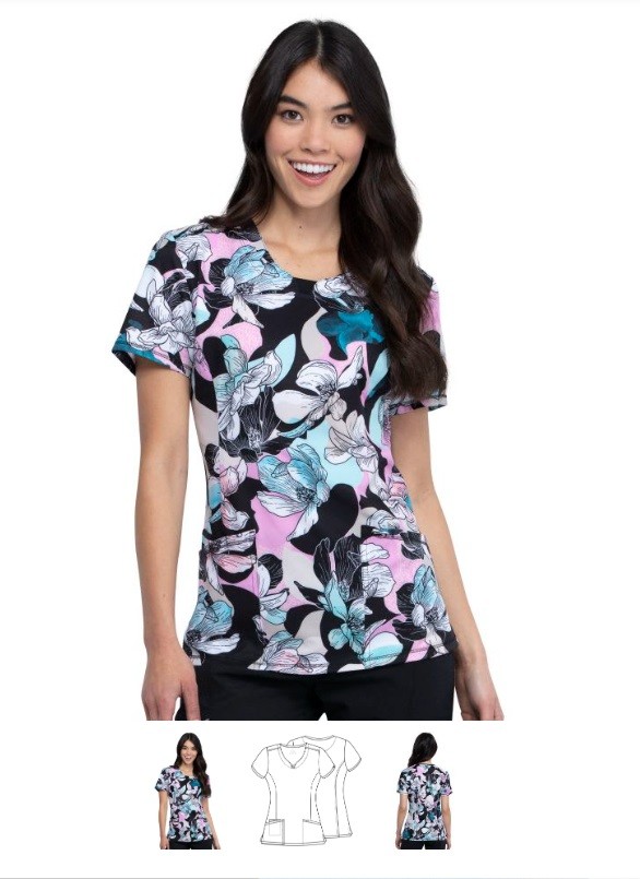Este top médico, parte de la colección Infinity de Cherokee, presenta un diseño funcional y cómodo.