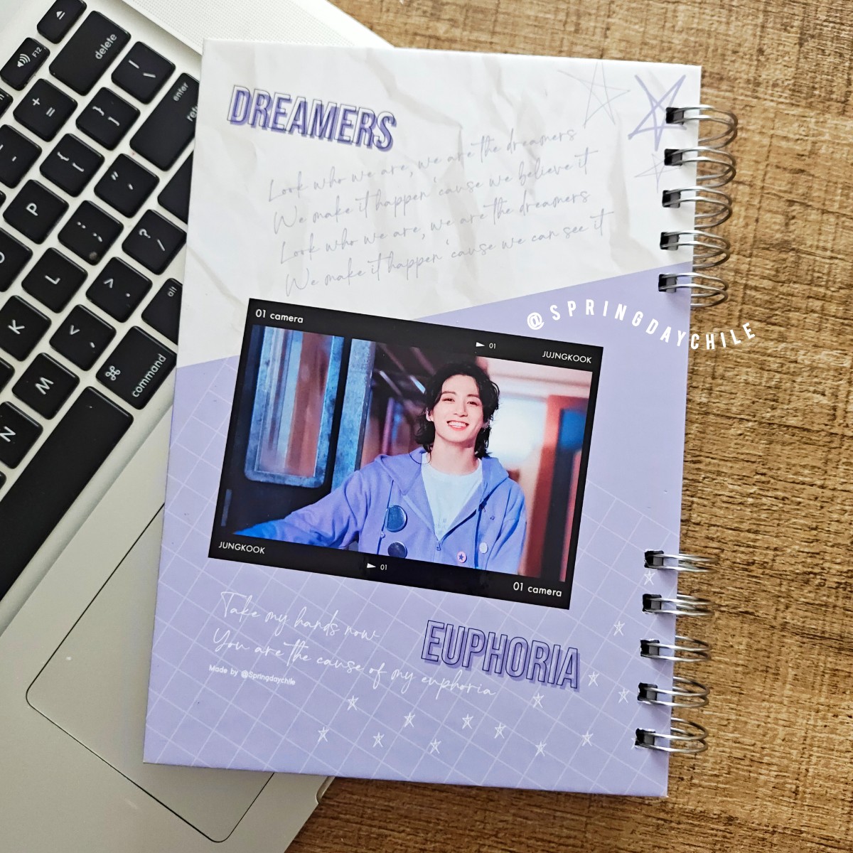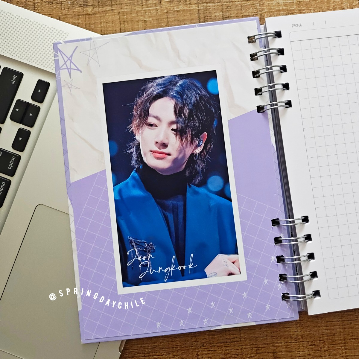 Un diseño elegante y moderno inspirado en Jungkook, perfecto para acompañarte en clases, trabajo o para organizar tus ideas 💜